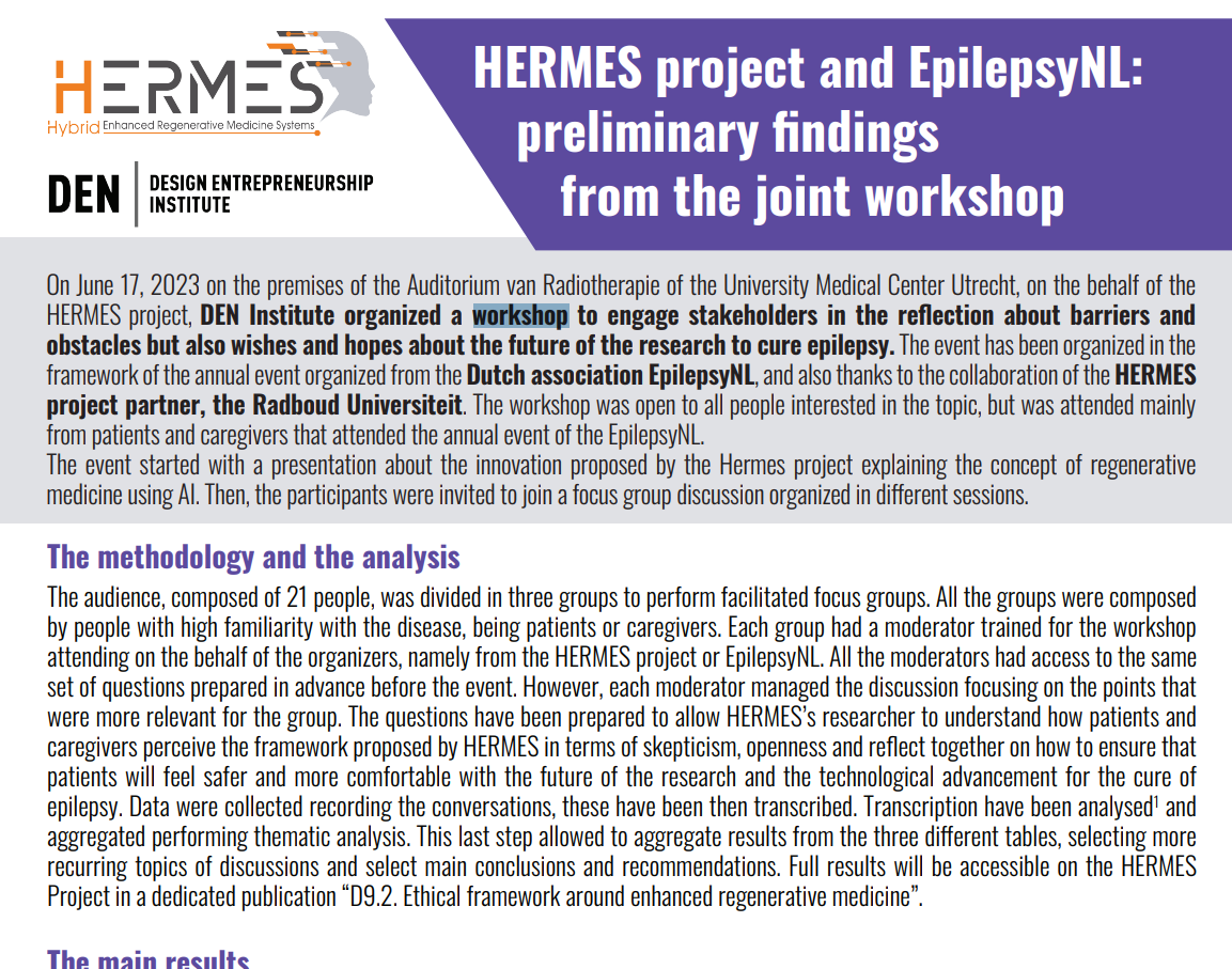 On June 17, 2023 on the premises of the Auditorium van Radiotherapie of the University Medical Center Utrecht, on the behalf of the HERMES project, DEN Institute organized a workshop to engage stakeholders in the reflection about barriers and obstacles but also wishes ...