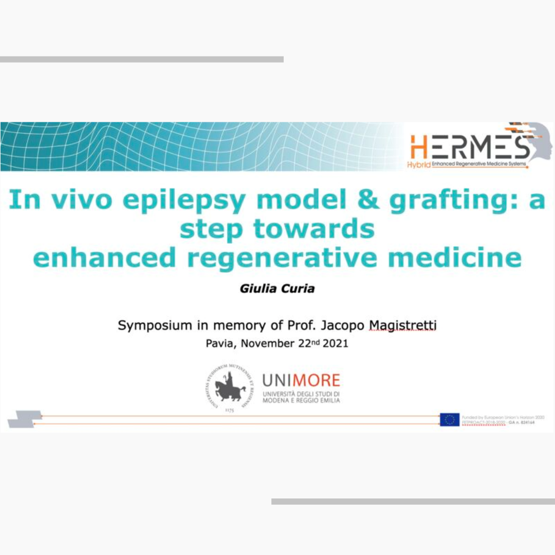 Our consortium partner CRID – UNIMORE Centro di Ricerca in the person of its PI Dr. Giulia CURIA presented “In vivo epilepsy model and grafting: a step towards enhanced regenerative medicine” at the Symposium in memory of Prof. Jacopo Magistretti, full professor of Physiology at the Department of Biology and Biotechnology L. Spallanzani of the University of Pavia.